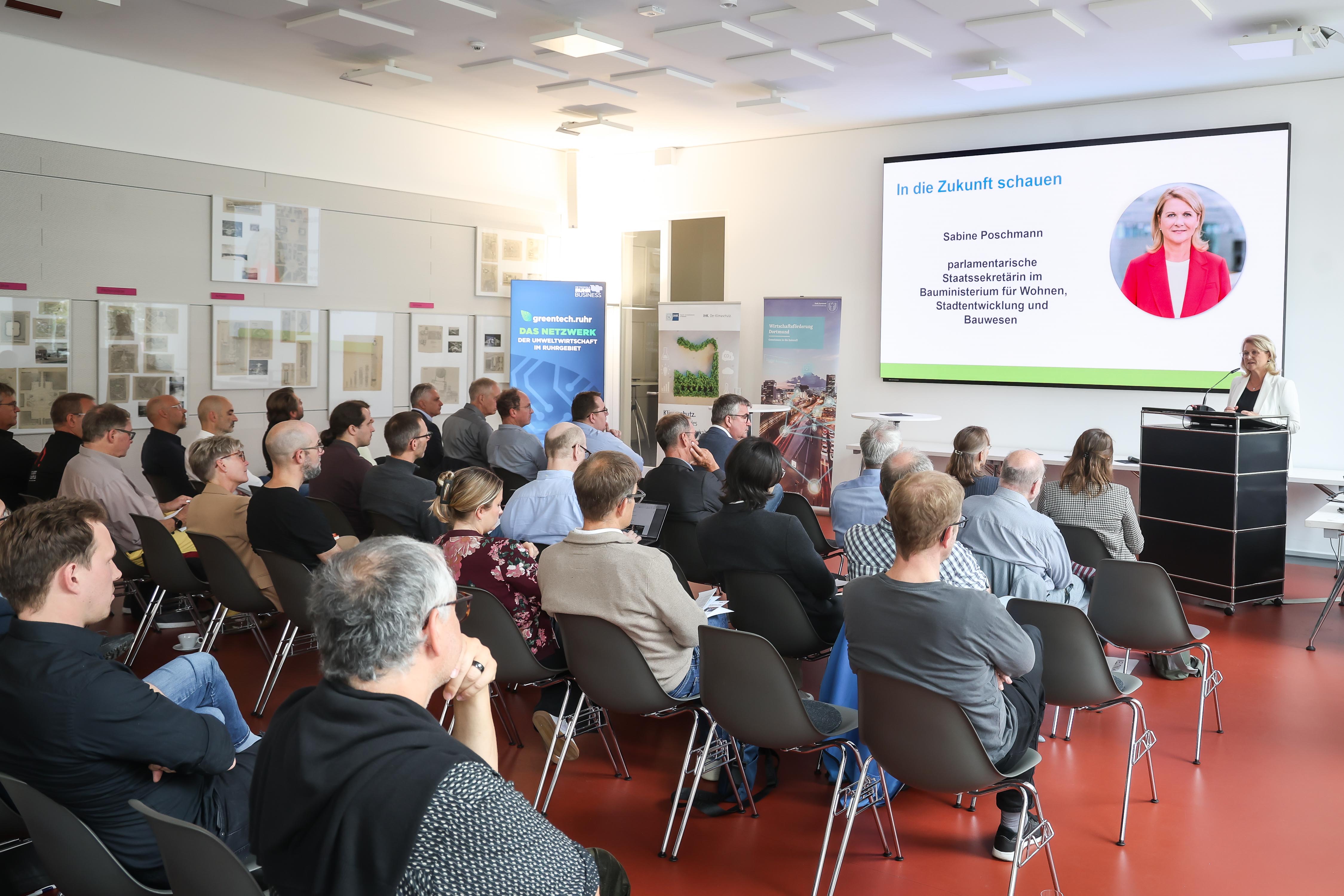 - Politische Rahmenbedingungen: Staatssekretärin Sabine Poschmann (Bundesministerium für Wohnen, Stadtentwicklung und Bauwesen) stellte die Novelle des Gebäudeenergiegesetzes sowie neue Förderansätze wie die serielle Sanierung vor.