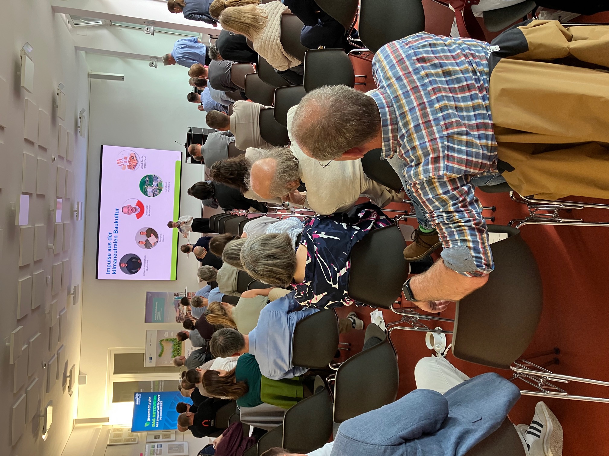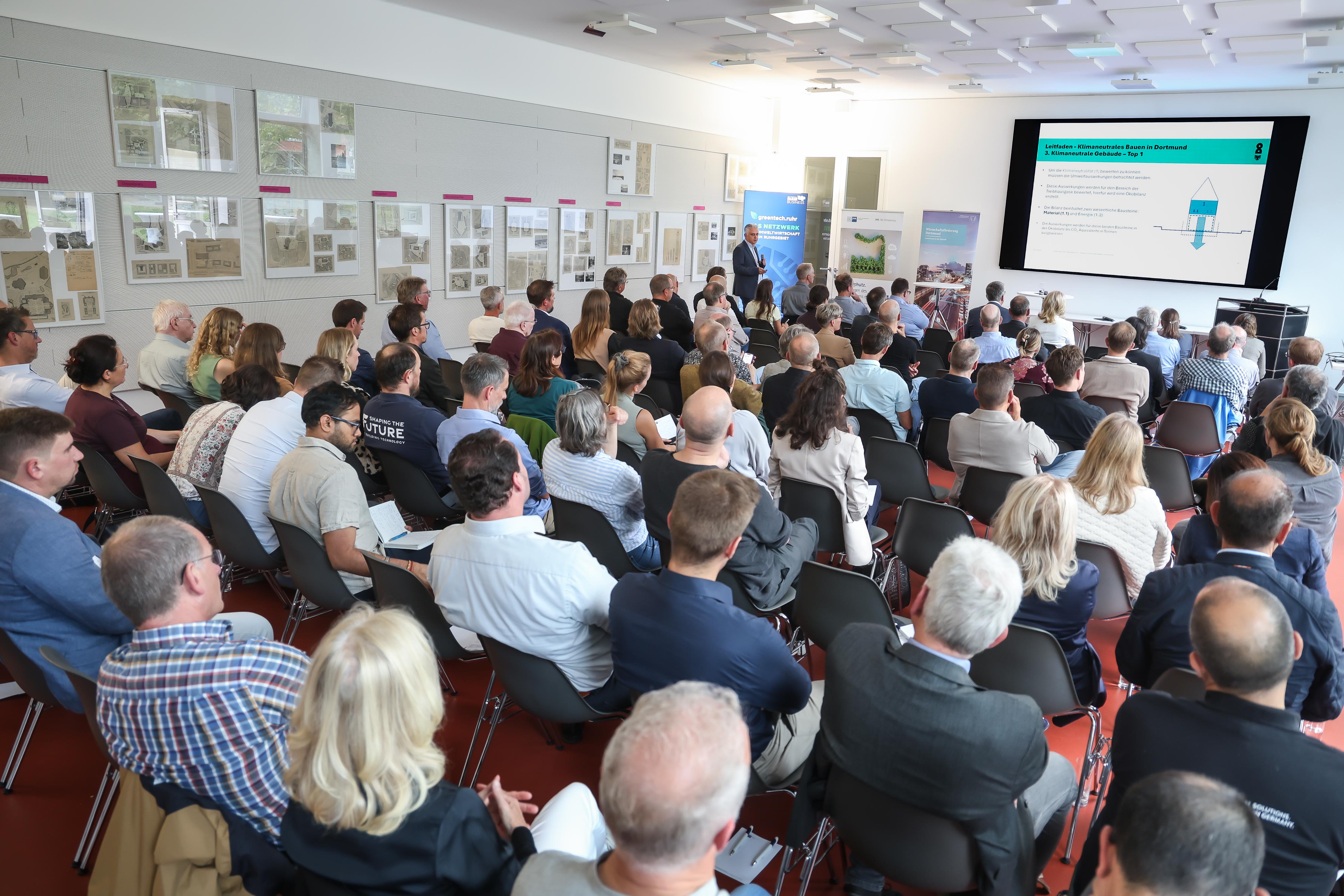 Am 4. September 2025 fand im Baukunstarchiv NRW in Dortmund die 14. Fachveranstaltung „Nachhaltige und intelligente Gebäude – Auf dem Weg zum klimaneutralen Gebäudestand“ statt. Gemeinsam mit der IHK Dortmund, der Wirtschaftsförderung Dortmund, dem Öko-Zentrum NRW und Greentech.Ruhr brachte das Kompetenznetzwerk Umweltwirtschaft.NRW (KNUW) 100 Fachleute aus Verwaltung, Wissenschaft und Wirtschaft zusammen, um Wege zum klimaneutralen Gebäudebestand zu diskutieren.