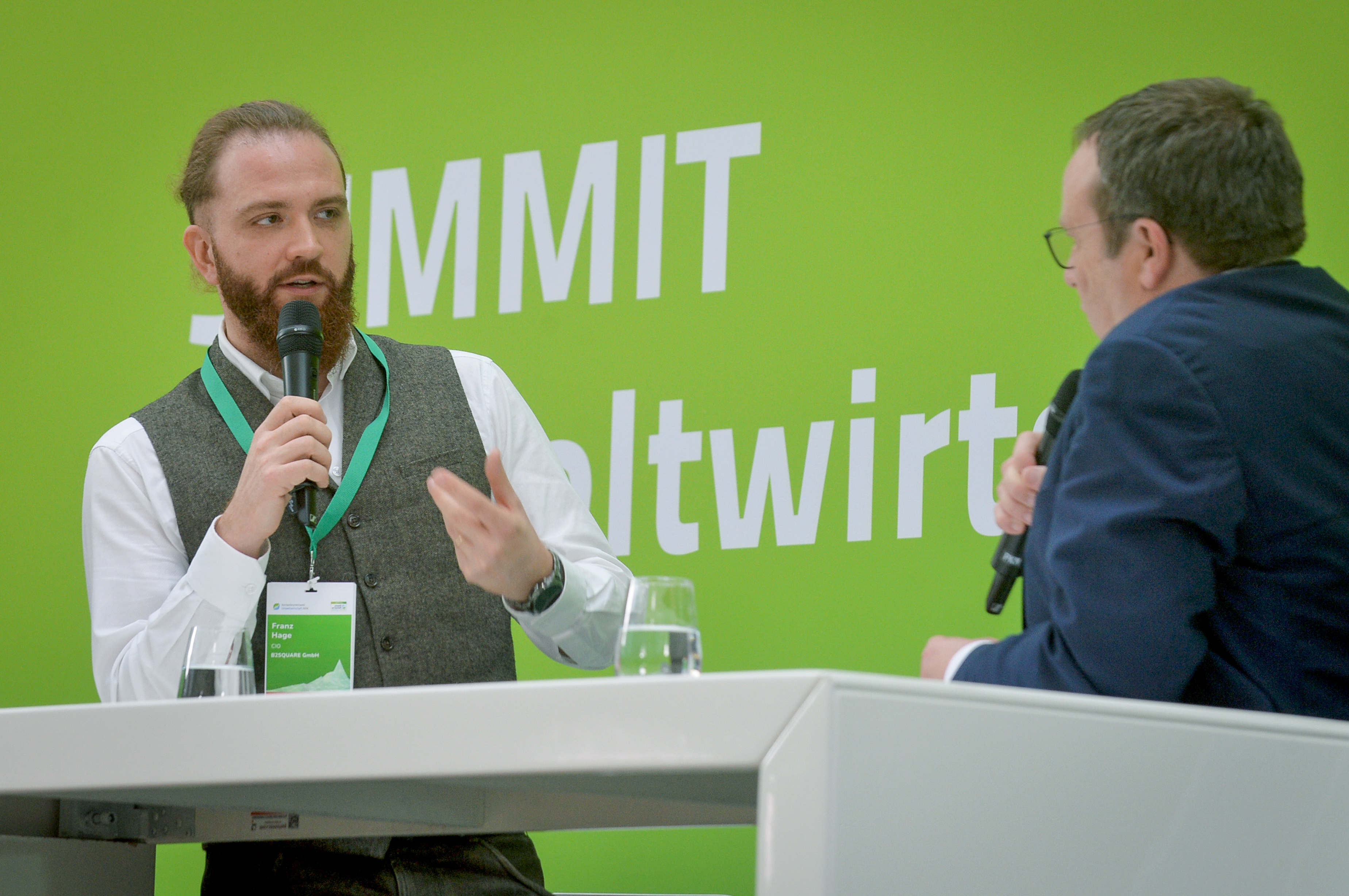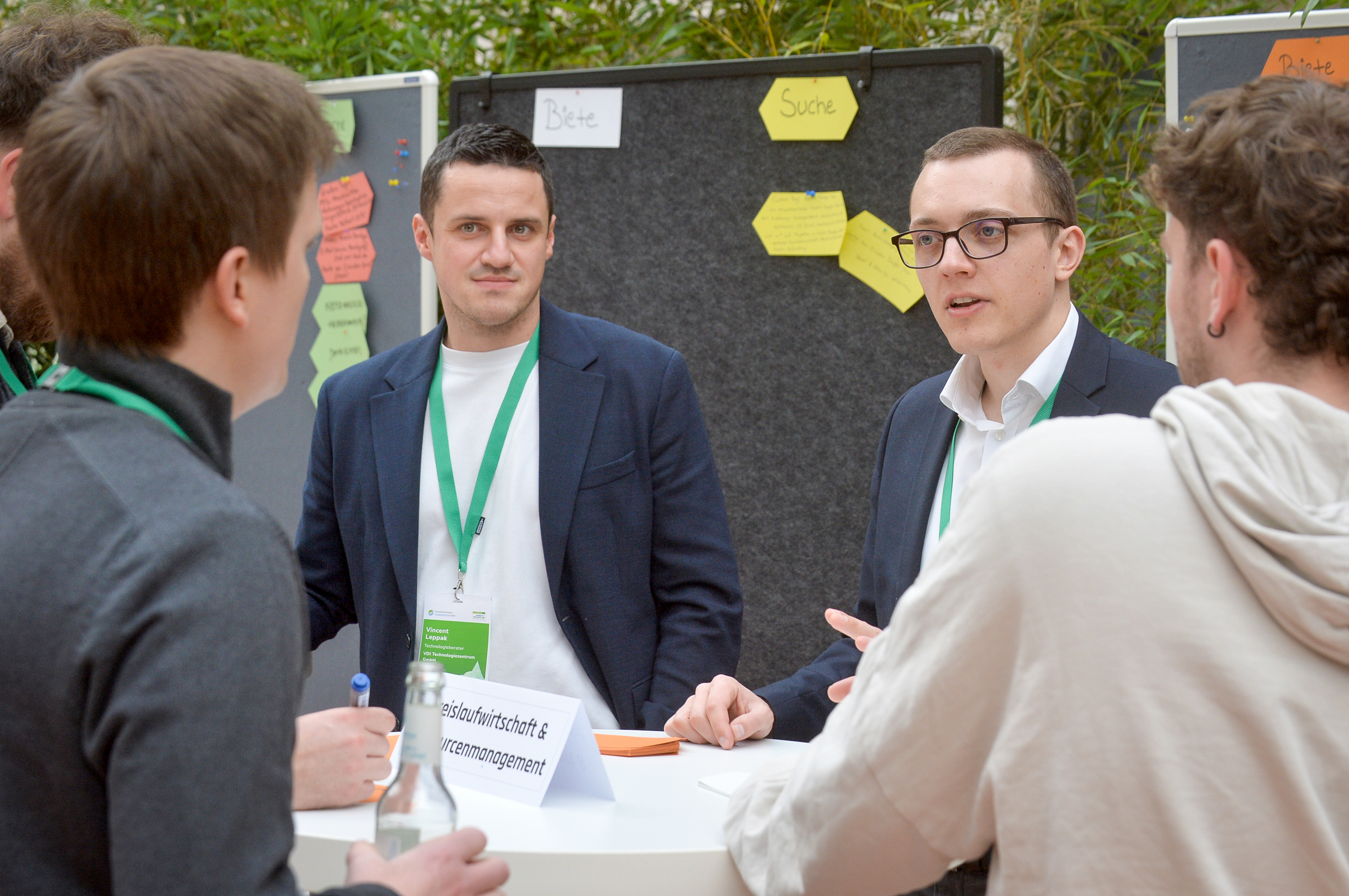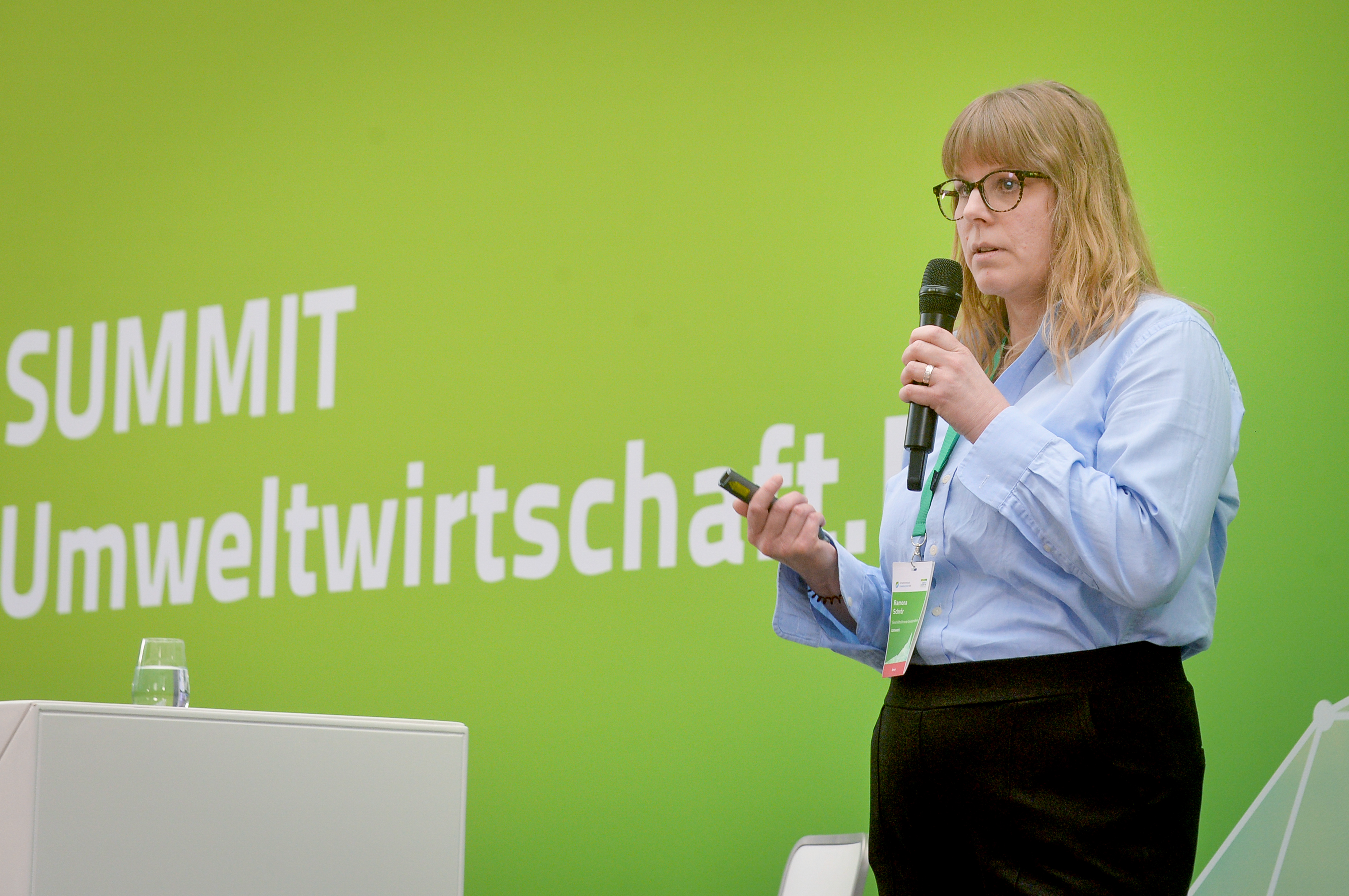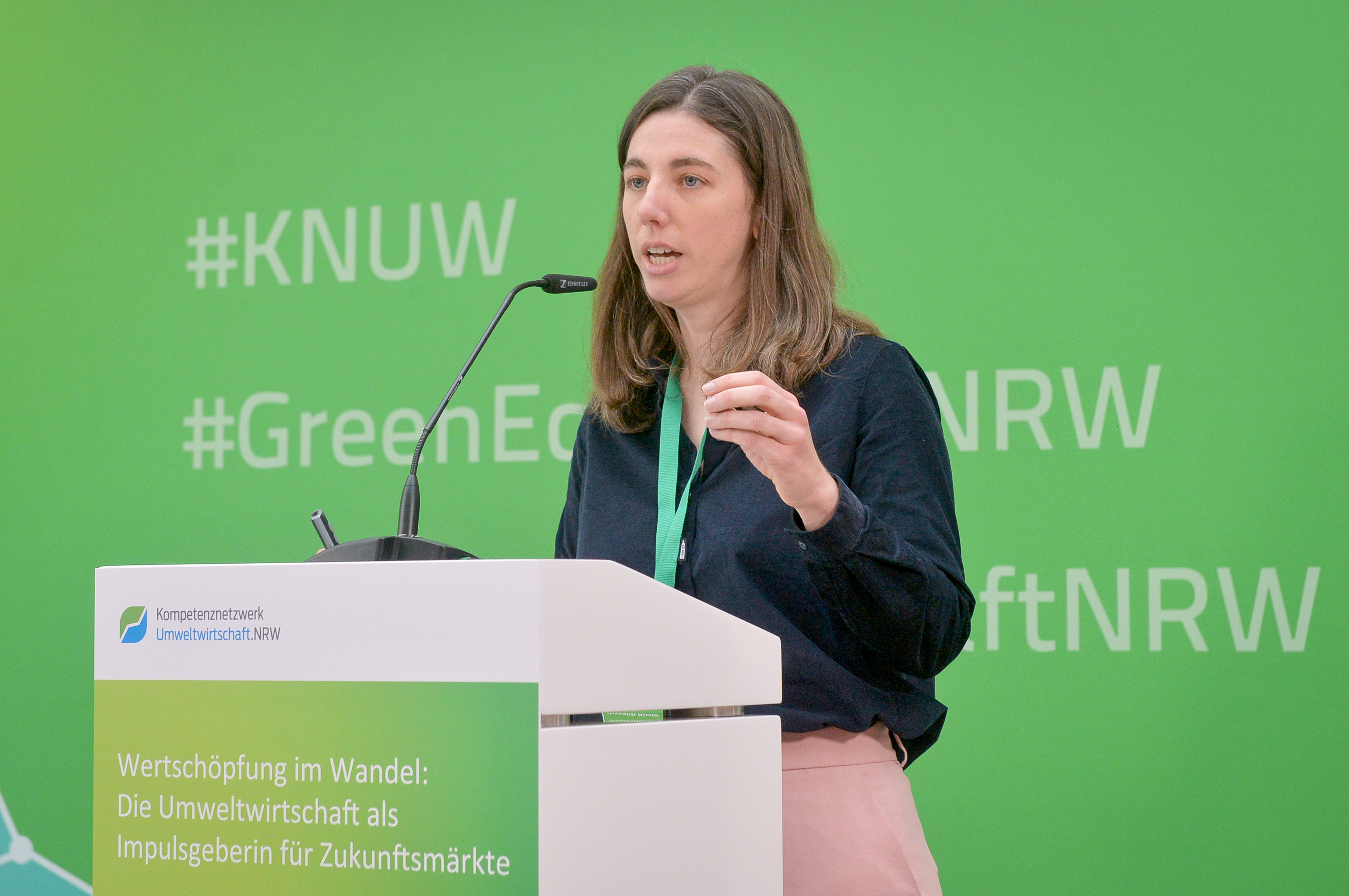 Es gehe längst nicht mehr allein um klassische Umwelttechnik oder Umweltschutz im engen Sinne. Vielmehr müsse die Umweltwirtschaft als Enabler für alle traditionellen Wertschöpfungsketten verstanden werden. Sie sei die Schlüsselbranche, die anderen Industriezweigen ermögliche, sich systematisch in Richtung klimaneutraler und kreislauforientierter Geschäftsmodelle zu entwickeln. Anschließend gaben Willi Peter (Co-reactive), Ramona Schrör (conwerk), Brian Moll (R-Cycle) und Sebastian Pütter (Smart Plastify) Einblicke in ihre Transformationansätze in den Wertschöpfungsketten Beton und Kunststoff. Sie präsentierten Ansätze, die nicht nur technologisch, sondern auch als Bausteine für neue, zirkuläre Geschäftsmodelle und regionale Wertschöpfungsketten zu verstehen sind.